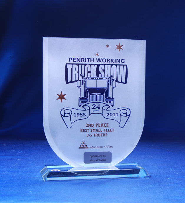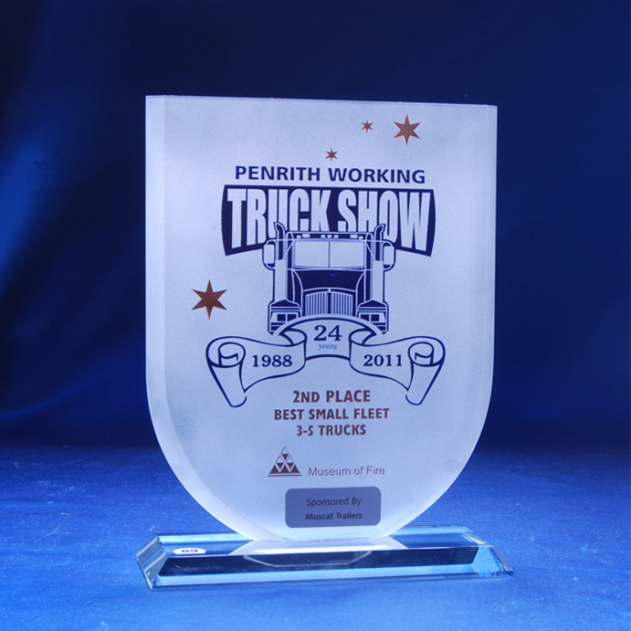 Glass trophies typically have a very slight green tinge, which can subtly affect the appearance of colour printing. In contrast, crystal trophies are completely clear.