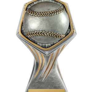 This baseball trophy from the Gladiator series combines a striking hexagonal top with an antique silver and gold finish, making it an elegant choice for celebrating sporting achievement. Crafted from durable resin, it features a distinctive baseball design and an integrated 25mm optional insert.