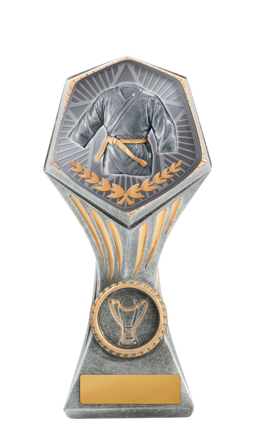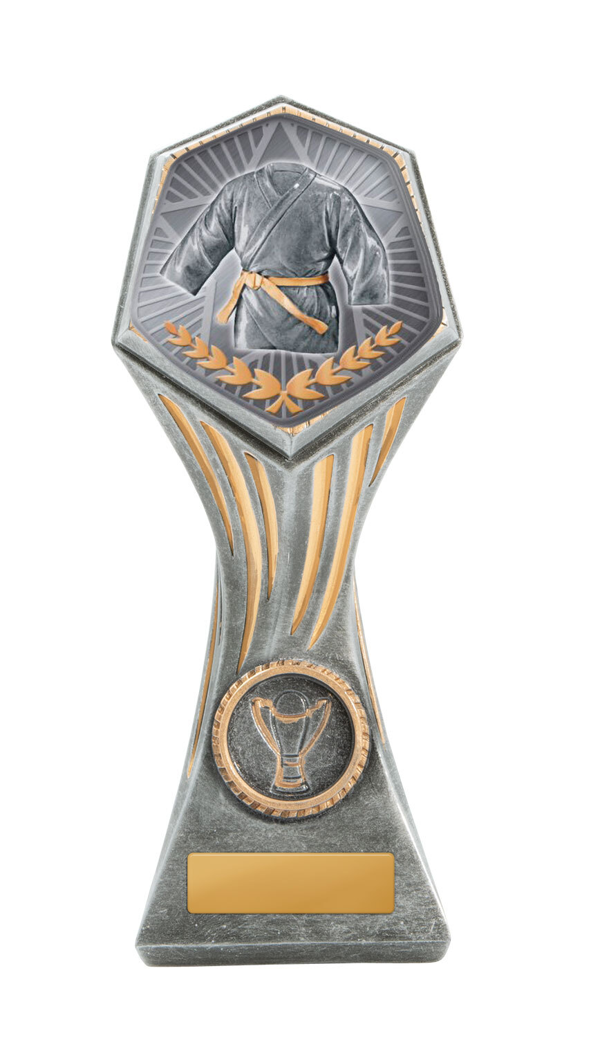 This versatile trophy cup delivers a professional finish in a choice of striking colour combinations, including silver with black, blue, gold, green, red, purple, or pink accents. Designed with a flared cup and a robust base, it stands out as both durable and elegant. It features a decorative design with a engraving plate suitable for laser engraving, making it a trusted choice for a broad range of sports trophies and achievement recognition.