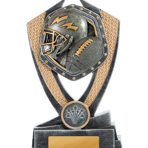 Designed for dance awards, this contemporary trophy cup presents a dynamic conical silhouette with decorative cutouts and prominent star motifs. The metallic upper section, available in vibrant blue, green, gold, and pink, is paired with a black base for a refined finish. Offering personalisation, it is an ideal choice for recognising dance achievement in a memorable and professional way.