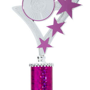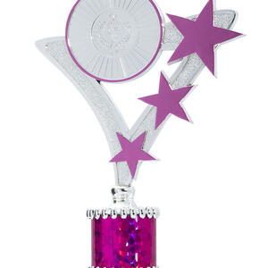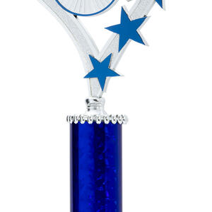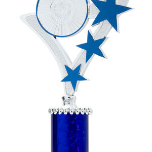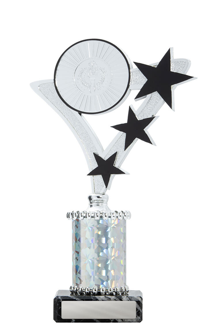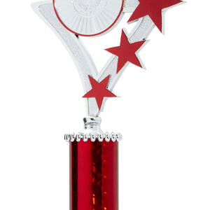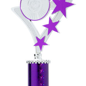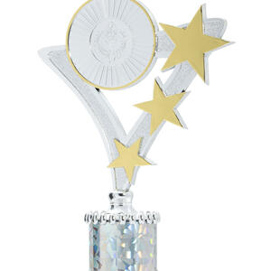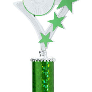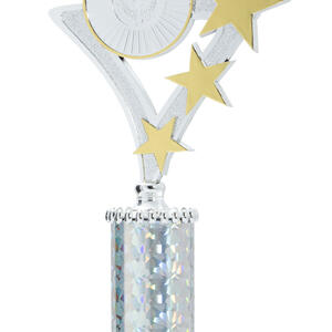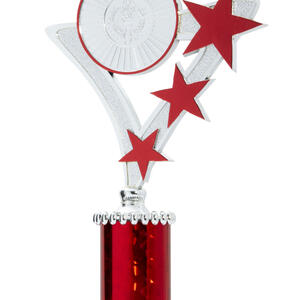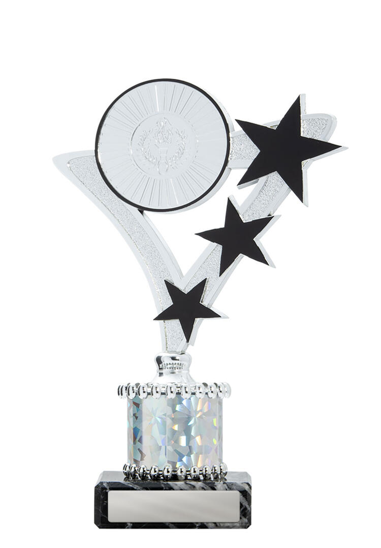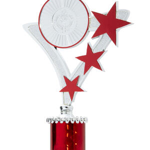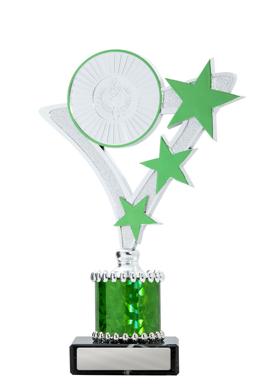 This trophy cup stands out with a metallic inspired finish and vibrant colour options, complemented by star shaped accents and a circular emblem at the top. It offers durability and a refined look for sports, party games, or award ceremonies. The base allows personalisation with engraving, supporting meaningful recognition across a variety of events.