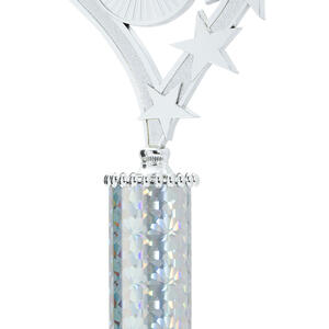 This elegant trophy cup from the Dance Cups range showcases a silver body with striking black and iridescent highlights, set on a sturdy base. Decorative stars, including a golden star at the top, give it a distinguished and celebratory feel, while the circular emblem allows for custom logo inserts. Designed for sports achievement recognition, this compact and durable award offers personalisation options, making it a trusted choice for acknowledging excellence across a variety of events.