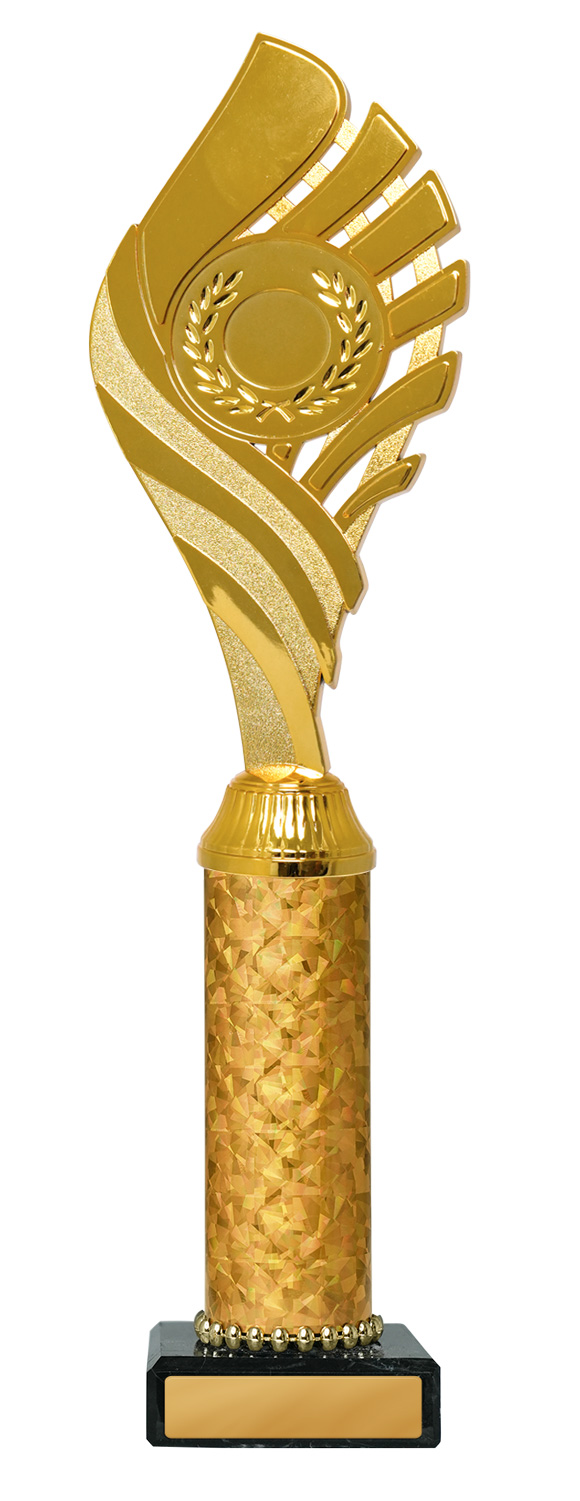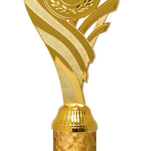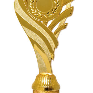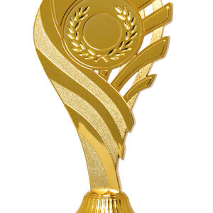 Striking a balance between modern elegance and timeless tradition, this gold Las Vegas Cup trophy features a decorative laurel wreath and cone design. The combination of a radiant metallic finish and a sturdy black base creates a durable and sophisticated choice for any achievement recognition. Ideal for dance cups or trophy cups occasions, its gold engraving plate allows for tailored personalisation to mark memorable milestones.