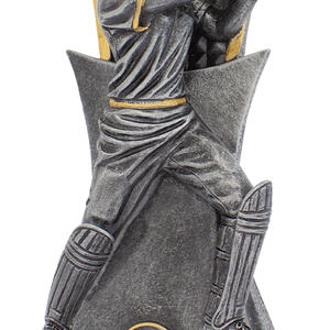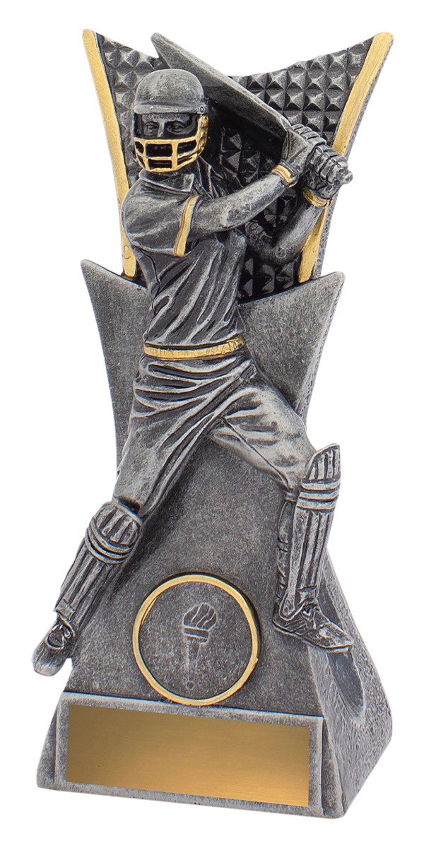 Celebrate outstanding achievement with this striking cricket trophy, crafted in durable resin and finished in elegant silver and gold tones. Featuring a female cricketer in full batting stance and protective gear, this award honours excellence and dedication. The torch emblem at the base adds a distinctive touch, making it an ideal choice for cricket trophies recognising skill and commitment in the sport.