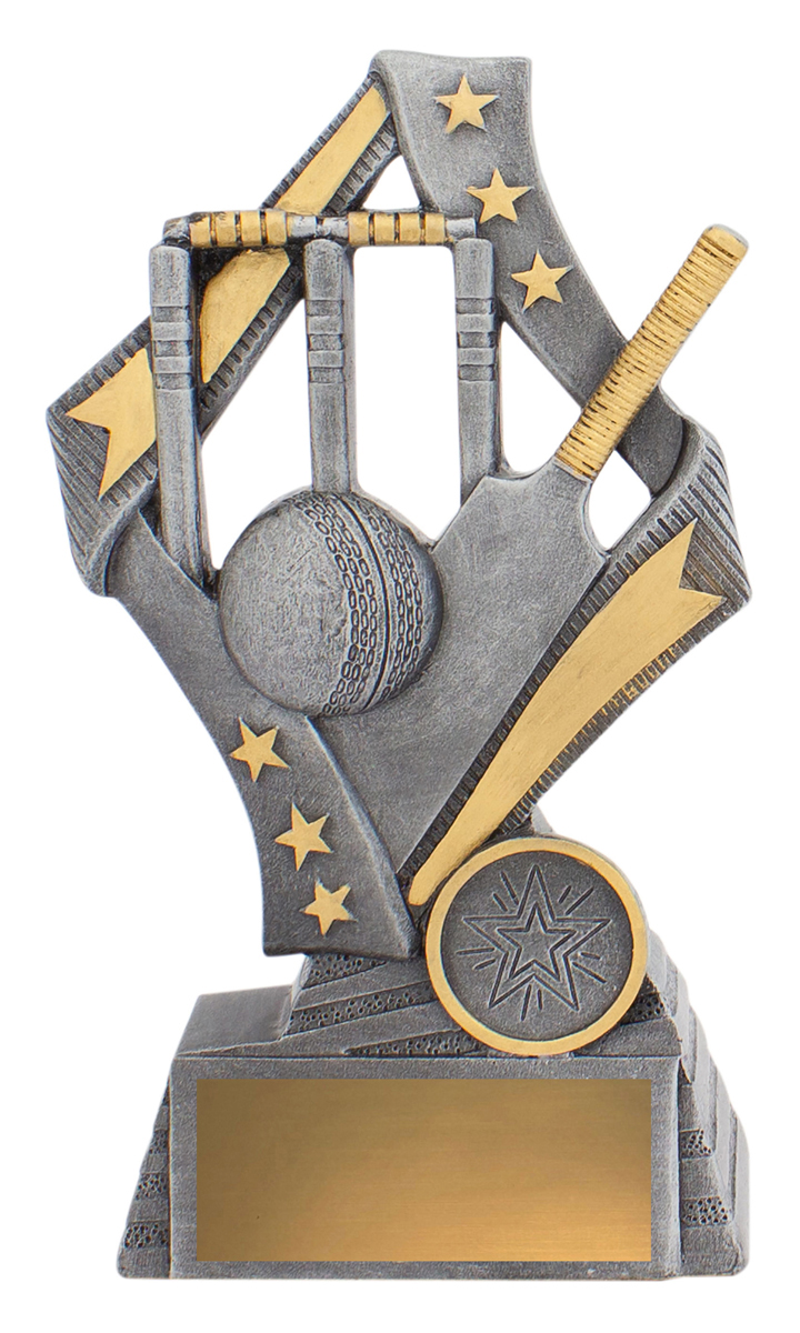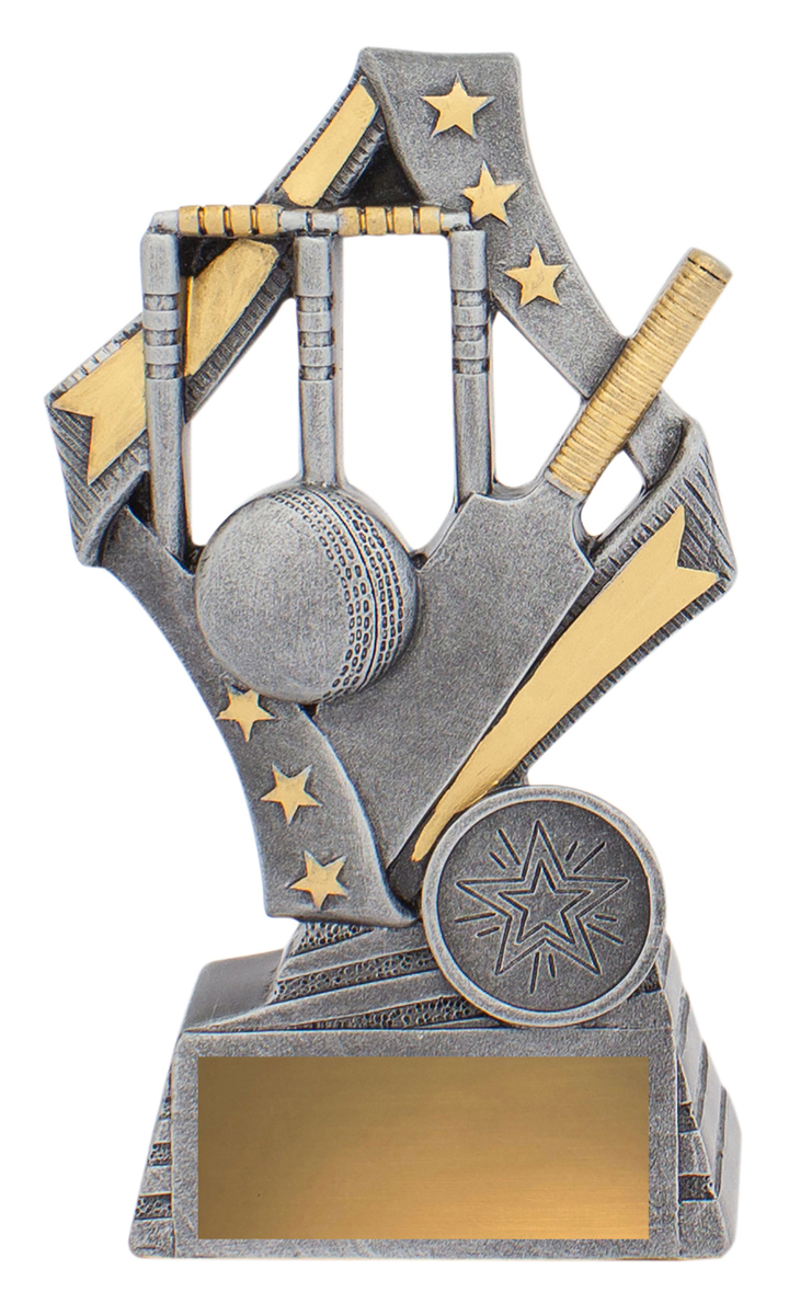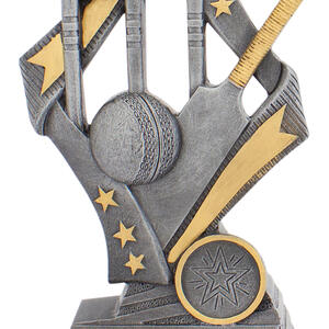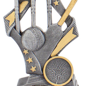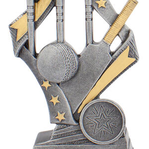 Celebrate achievement on the cricket field with this cricket trophy, crafted in a striking combination of silver and gold tones. Designed with a trophy like silhouette, it features meticulously detailed cricket stumps, a bat, and a ball, capturing the essence of the sport. Its metallic finish ensures lasting quality and an elegant, professional presentation.