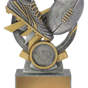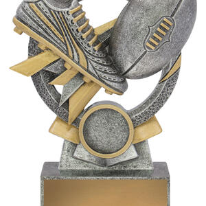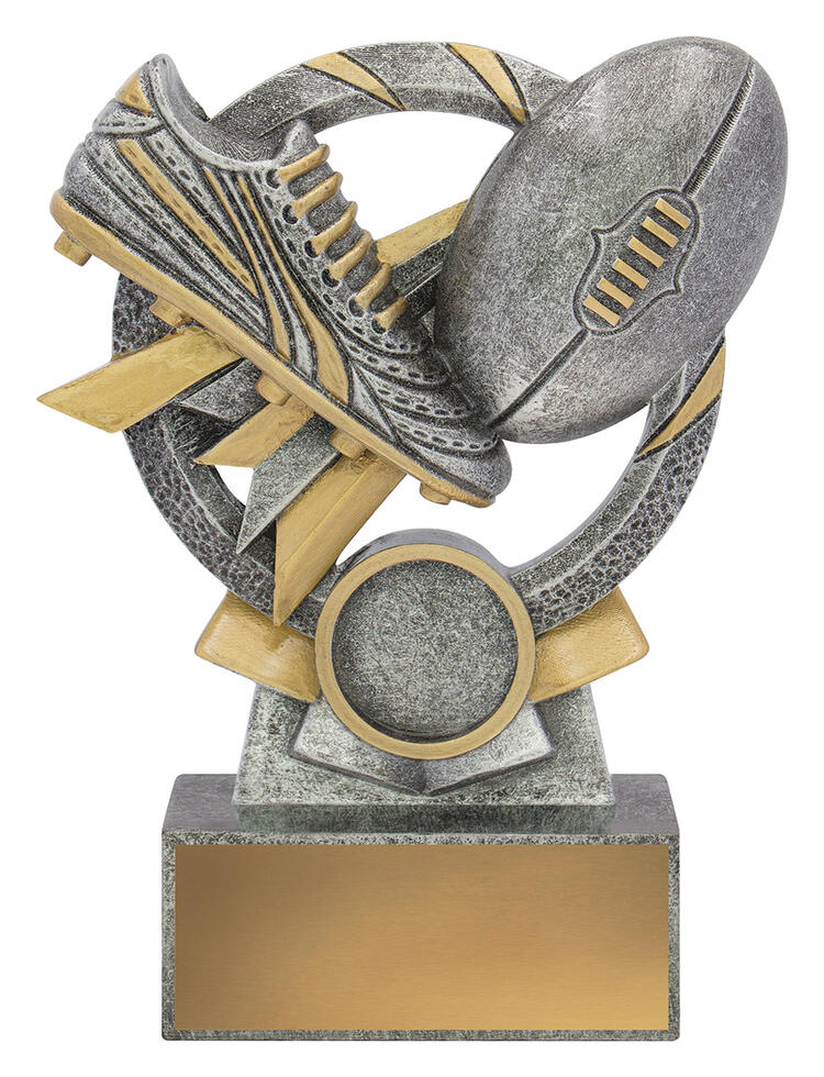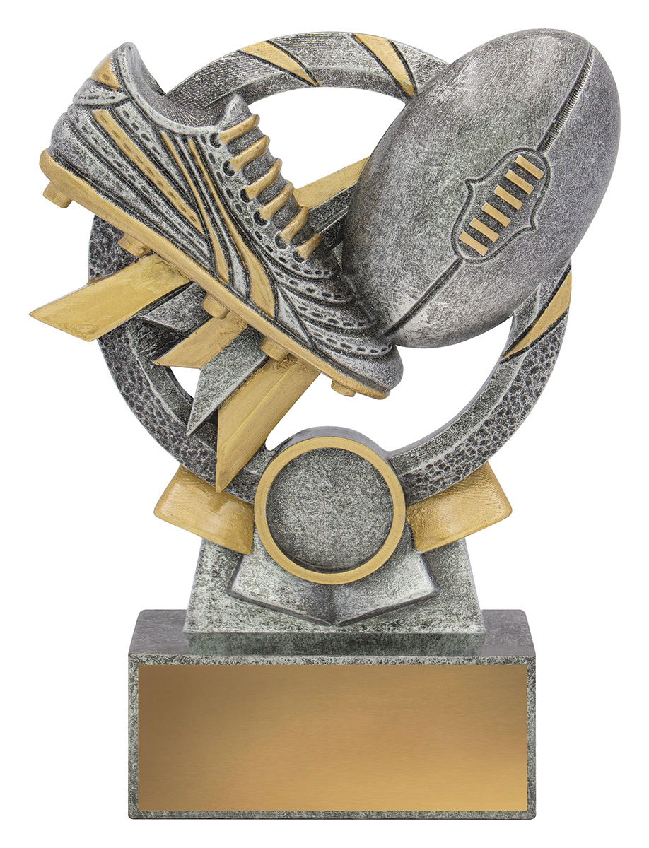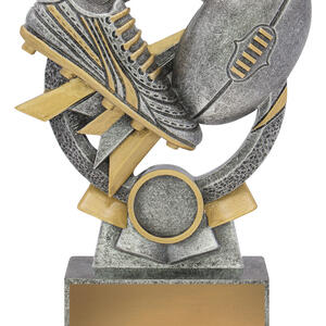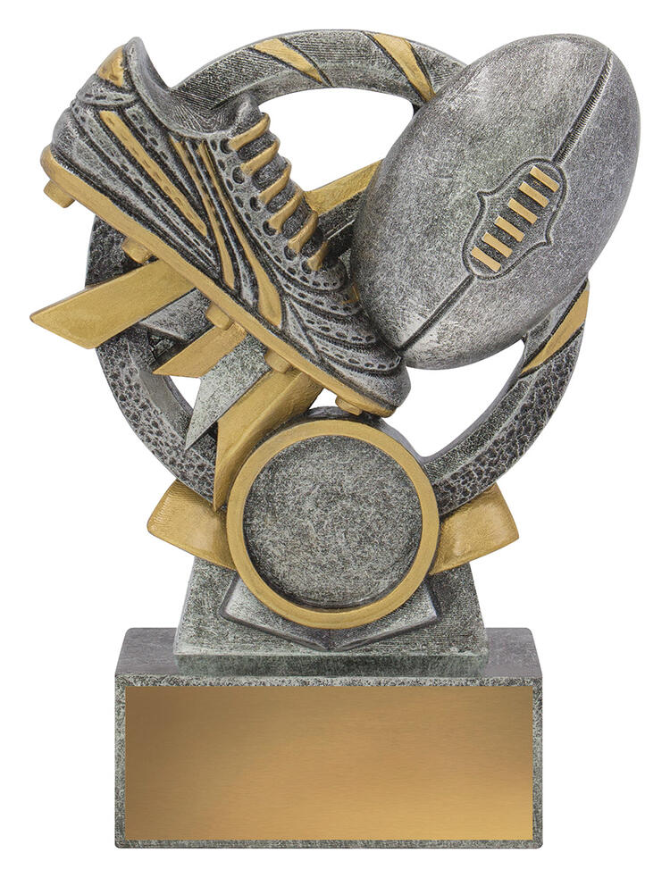 Celebrate achievement on the field with this aussie rules football trophy, crafted from durable resin in striking gold and silver tones. The circular base provides stability, while the detailed football and cleat design honours the spirit of the game. Its decorative elements offer a professional and memorable way to recognise outstanding sporting performance.