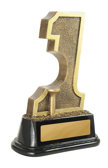 Celebrate a remarkable achievement on the course with this striking Golf Hole in One Trophy. Crafted from durable cast resin, it features a bold number “1” design in antique gold tones with a textured finish and smooth gold edging for visual contrast. You clip the ball into the ball space. The classic black base features a gold-engraved plate for personalised details such as the player’s name, date, or event.