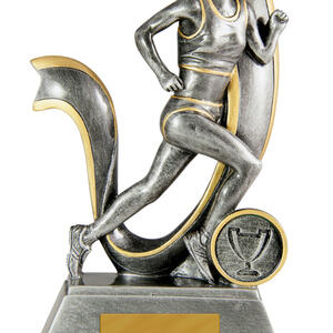 Celebrate outstanding achievement in women's athletics with this elegant trophy, crafted to recognise dedication on the track. Featuring a dynamic female runner figure, it is distinguished by scalloped detailing and a sturdy base. This is a trusted choice for athletics trophies, combining precision, durability, and refined style.