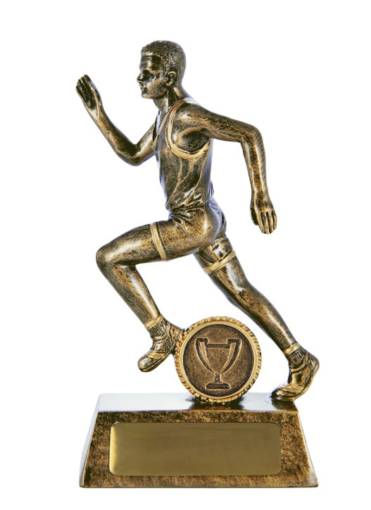 This elegant trophy captures the energy of athletic achievement with a detailed running figure poised above a sturdy rectangular base. The metallic finish and circular emblem featuring a trophy icon create a distinguished presence, making it an ideal choice for recognising excellence in running events. Crafted for durability and distinction, it stands out among athletics trophies and sports trophies as a trusted symbol of accomplishment.