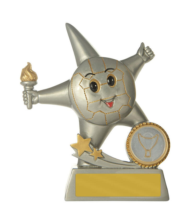 Celebrate young achievers with this charming Little Star Netball Trophy, designed with a smiling star figure holding a torch and trophy emblem. The metallic finish in silver and gold provides a refined look, while the gold stand and column highlight its celebratory character. Ideal for netball trophies presentations, its star shaped design and sturdy base make it a memorable recognition piece.