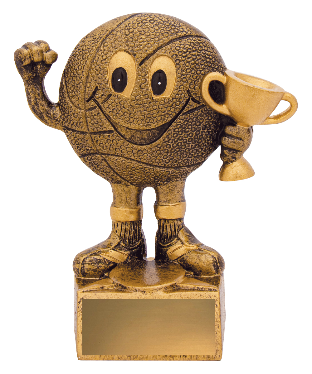 Celebrate the joy of achievement with this gold trophy, featuring a smiling basketball character proudly holding a trophy. Crafted from durable resin, this award offers a memorable and approachable way to honour players in basketball awards ceremonies. The vibrant design captures the spirit of teamwork and recognition on and off the court.