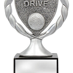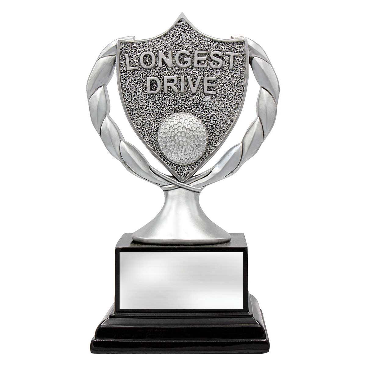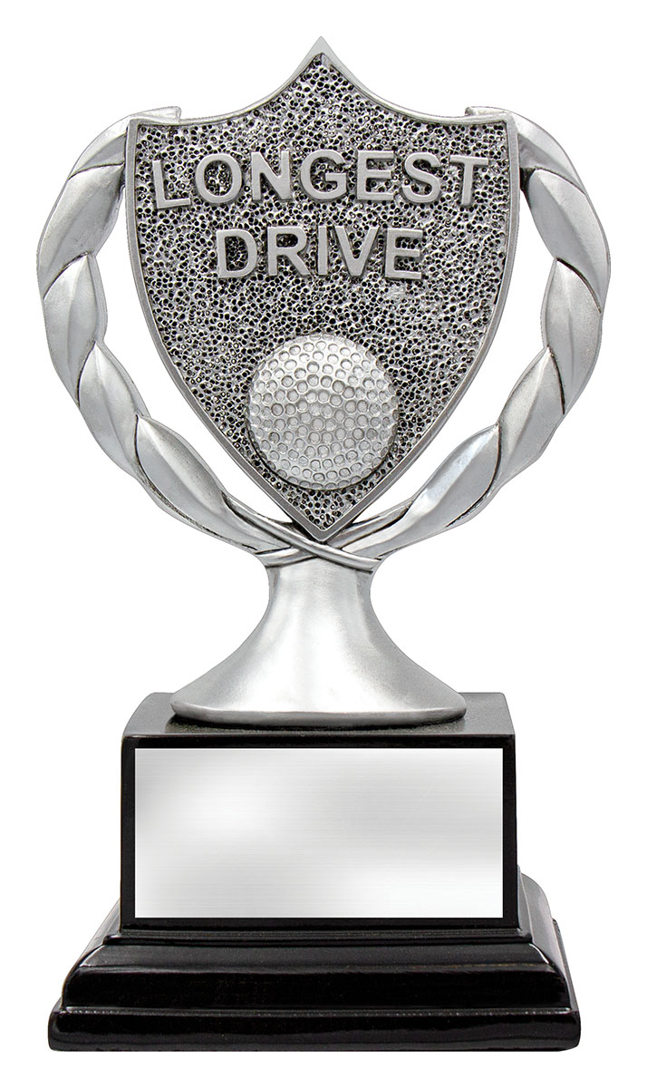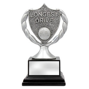 This sleek silver golf trophy is designed for longest drive recognition. With a textured golf ball design and classic black base, itÂ’s ideal for tournaments and golf day presentations.