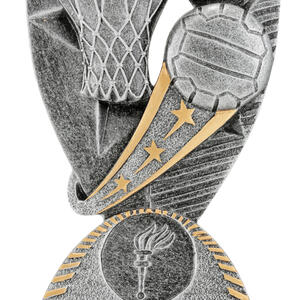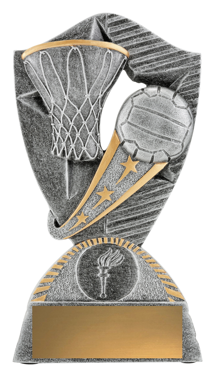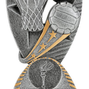 This refined trophy stands out with its silver and gold metallic finish, featuring a contemporary netball hoop and ball design complemented by a torch emblem. Crafted for durability and distinction, this trophy is an ideal choice for those seeking netball trophies that recognise skill, sportsmanship, and achievement in every season.