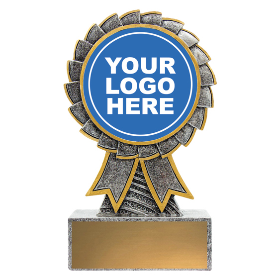 This elegant resin rosette trophy combines a textured silver finish with gold accents. Designed to suit any sport or activity, it features a circular insert area for your custom printed logo or a standard sport centre.
