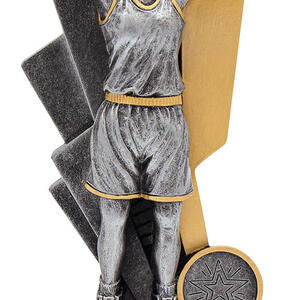 Celebrate accomplishment on the court with this distinguished award for basketball, crafted to honour female athletes. The trophy features a striking figurine in a shooting pose, presented in shimmering silver and gold tones atop a sturdy base. A star emblem adds a celebratory touch, making this elegant piece a trusted choice for recognising skill and dedication.