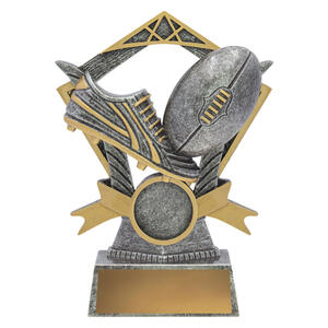 Crafted for the true spirit of Aussie Rules, this aussie rules football trophy features a dynamic shoe and ball motif atop a decorative base. The resin construction standing 15cm tall, offers a professional way to recognise achievement in football.