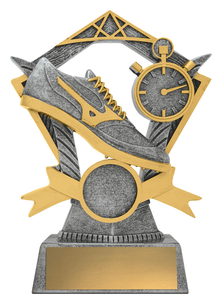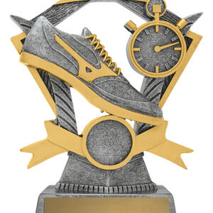 This athletics trophy honours achievement with a refined gold and silver metallic finish, capturing the spirit of competition through its detailed shoe and stopwatch design. Crafted for durability and distinction, it is ideal for recognising excellence in running and athletics. The substantial base offers space for personalisation, making each award a memorable symbol of accomplishment.