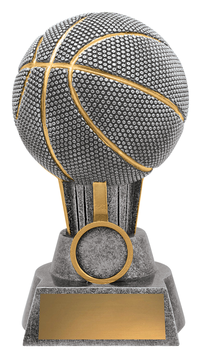 This basketball shaped trophy combines a textured silver finish with striking gold accents, offering a sophisticated choice within basketball trophies. Crafted from durable resin, it showcases quality workmanship suited to any recognition event. The solid base allows for future personalisation suited to recognising excellence on the court.