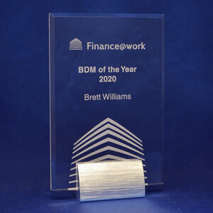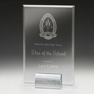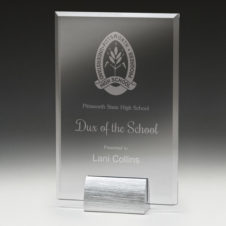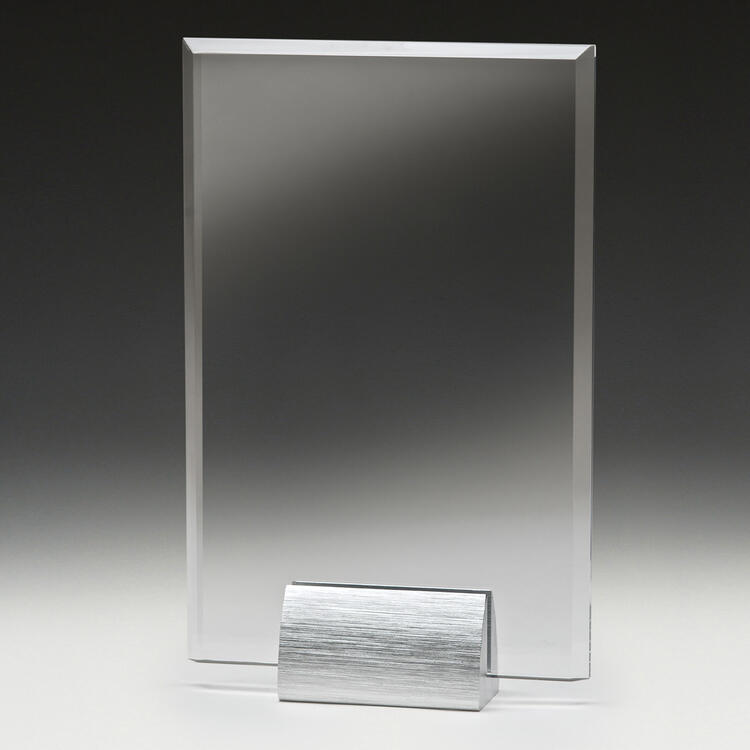 This acrylic award features a sleek, rectangular design in clear and silver, crafted from quality acrylic and metal. The metallic stand provides both stability and an elegant visual accent, making it suitable for any professional or celebratory setting. Designed for customisation, it offers a refined way to recognise achievement with a contemporary, memorable presentation.