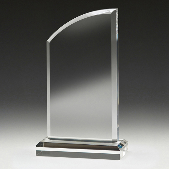 A timeless clear acrylic award featuring a gently arched top and solid rectangular base. Its polished edges and optical clarity provide a premium glass like appearance while maintaining the lightweight durability of acrylic. Perfect for corporate recognition, service awards, and achievement presentations.