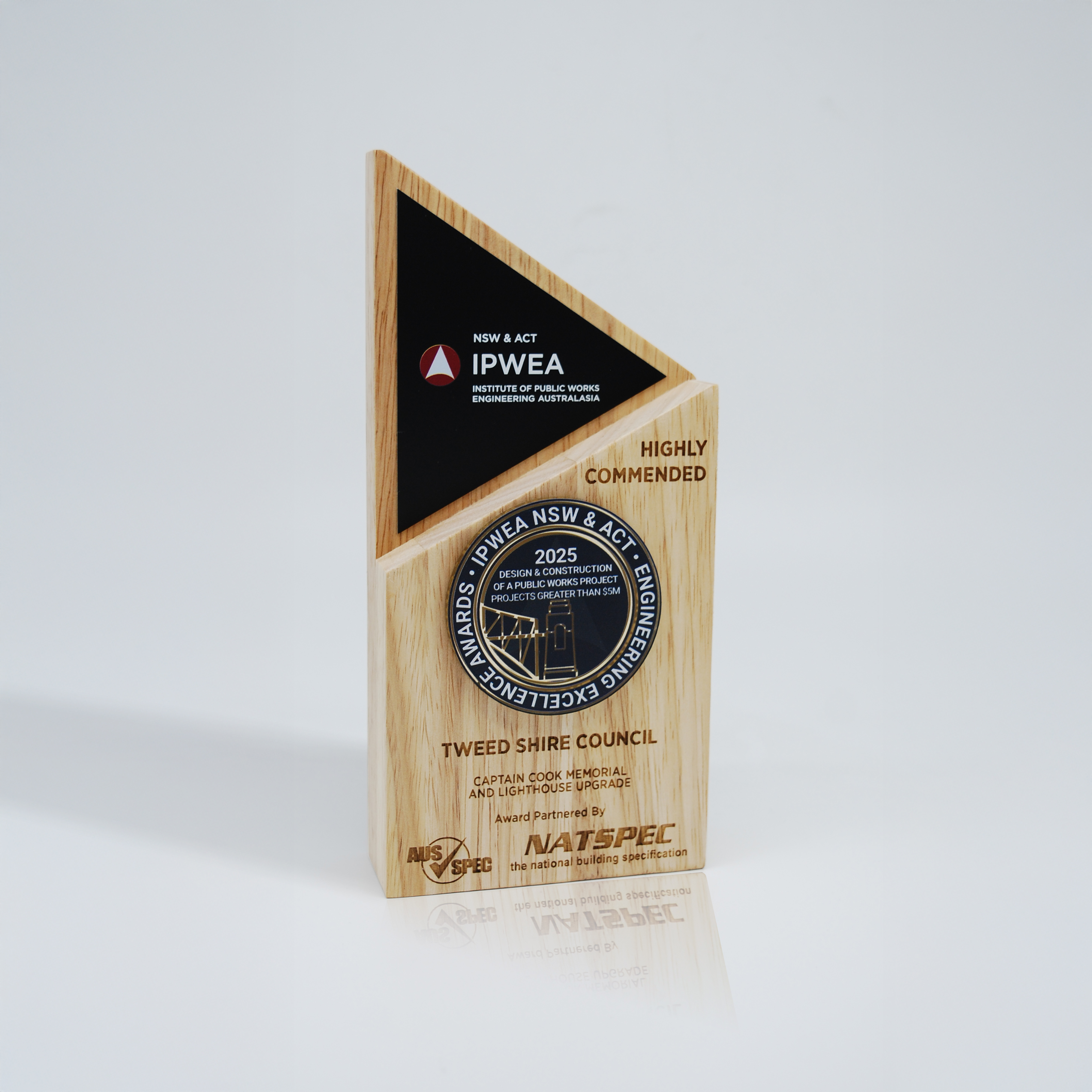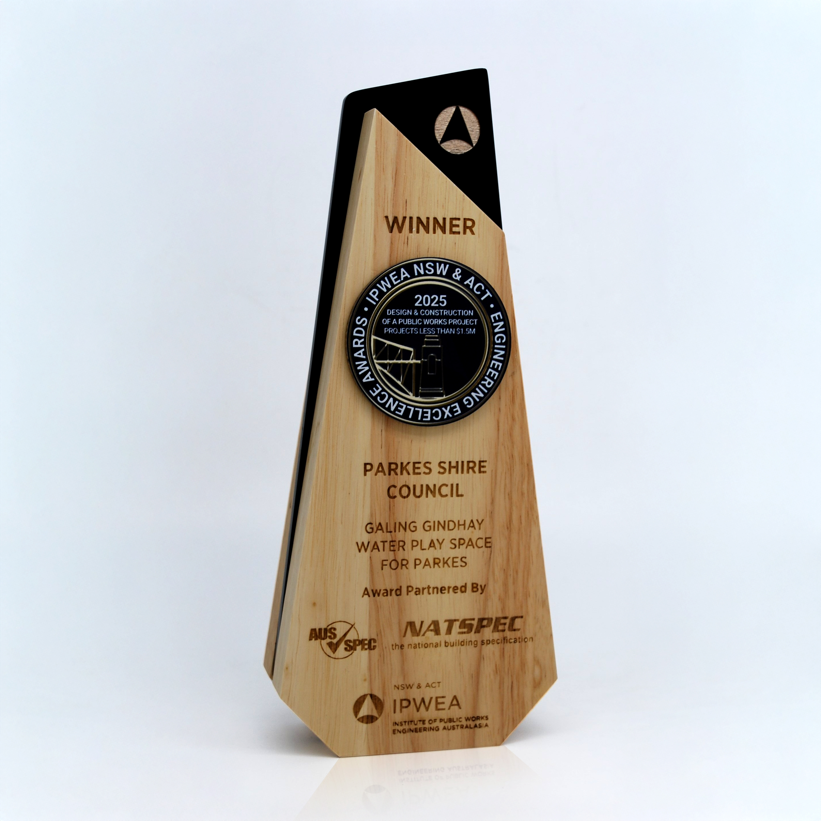 Our Blended Bespoke Timber Awards showcase harmony between natural timber and contemporary materials. Each piece is custom-crafted using sustainably sourced Australian hardwoods combined with complementary elements such as metal, cement, or acrylic to create striking, modern designs.