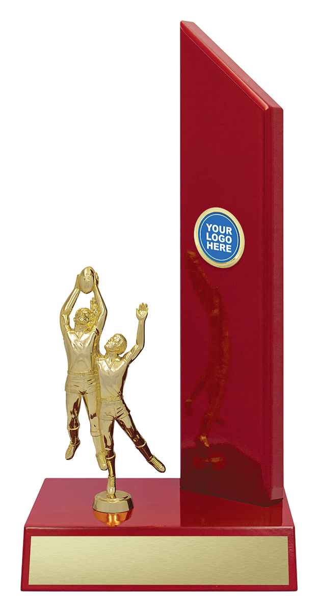 Gloss Red Timber Wing Aussie Rules Trophy with 25mm Centre