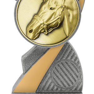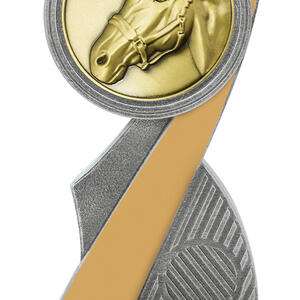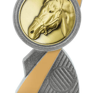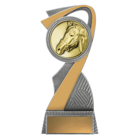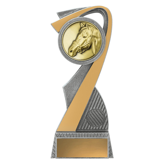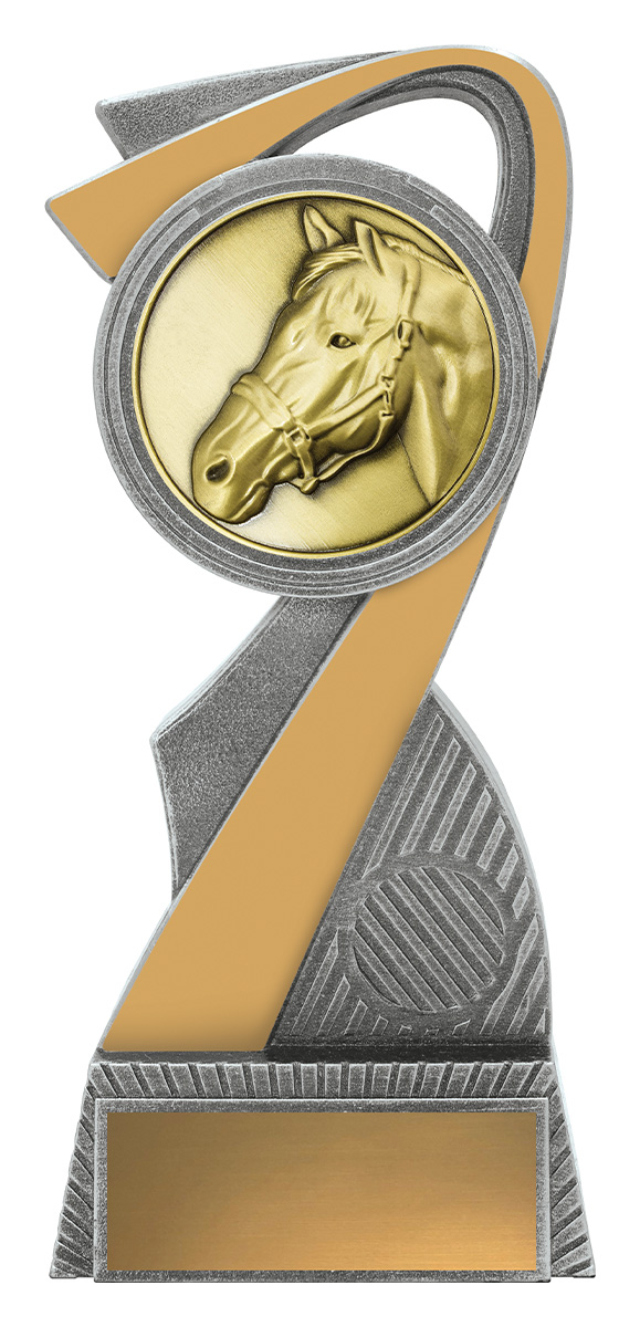 With a gold tone horse head medallion mounted on a sleek silver-and-gold resin frame, this trophy blends traditional equestrian imagery with modern styling. Ideal for participation awards, age-group trophies or special recognition across all riding disciplines.
