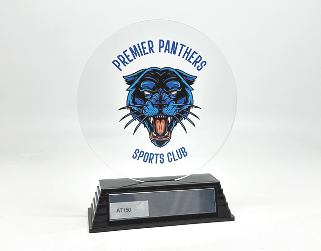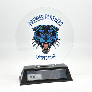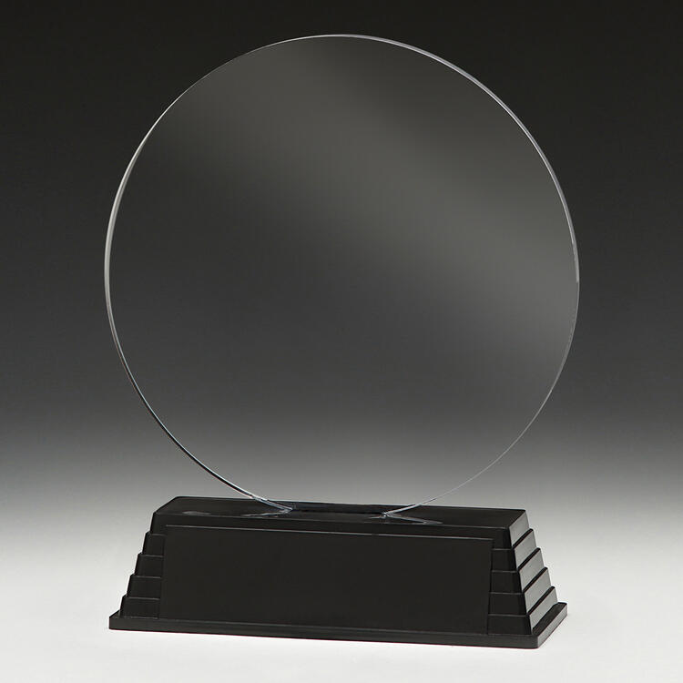 Celebrate success with this bold star shaped acrylic award, mounted on a stepped black base with a gold front plate for custom engraving. The clean cut design and polished edges make it a standout piece for talent recognition, performance awards, or event trophies.