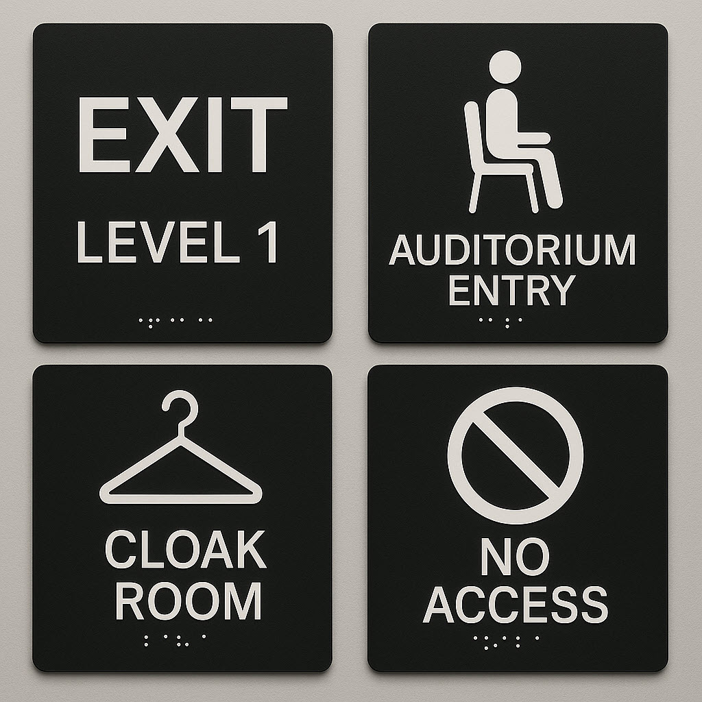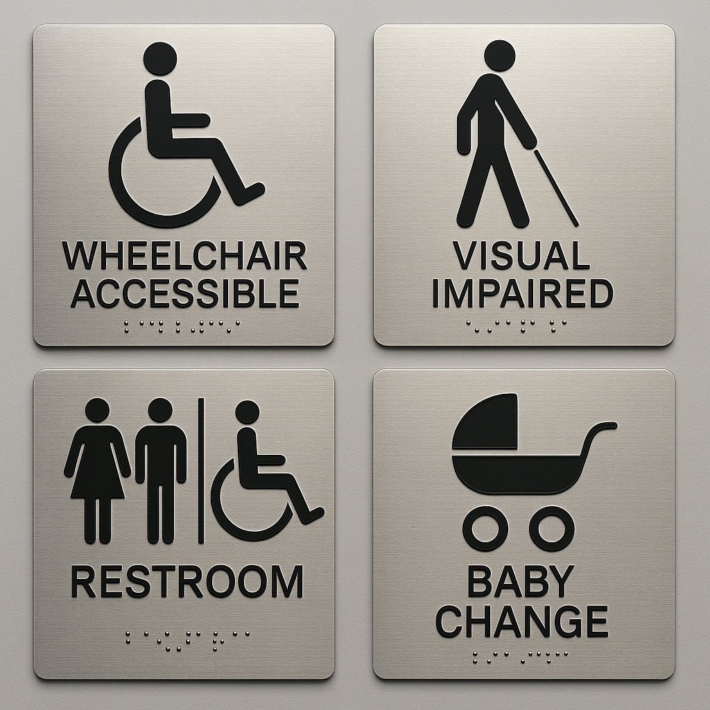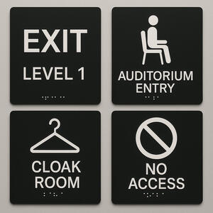 Our Braille and tactile signs provide essential accessibility for public spaces, ensuring compliance with the Disability Discrimination Act (DDA) and relevant Australian Standards (AS 1428.1). Designed for durability and clarity, these signs combine raised tactile lettering and Grade 1 Braille with strong visual contrast to assist people with vision impairments.