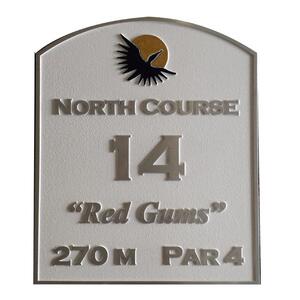 Weather-resistant and built to withstand outdoor conditions, these signs are ideal for displaying hole numbers, distances, and club logos. Sponsors' Inserts in full colour are also available.
