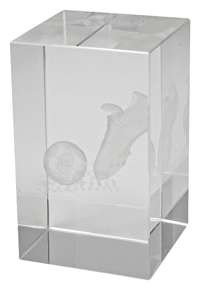 This crystal block trophy offers a refined approach to recognising football achievement. Crafted from clear crystal, its rectangular form is accented by a precisely etched football and boot design, merging elegance with sporting spirit. A distinguished addition to any football trophies collection.