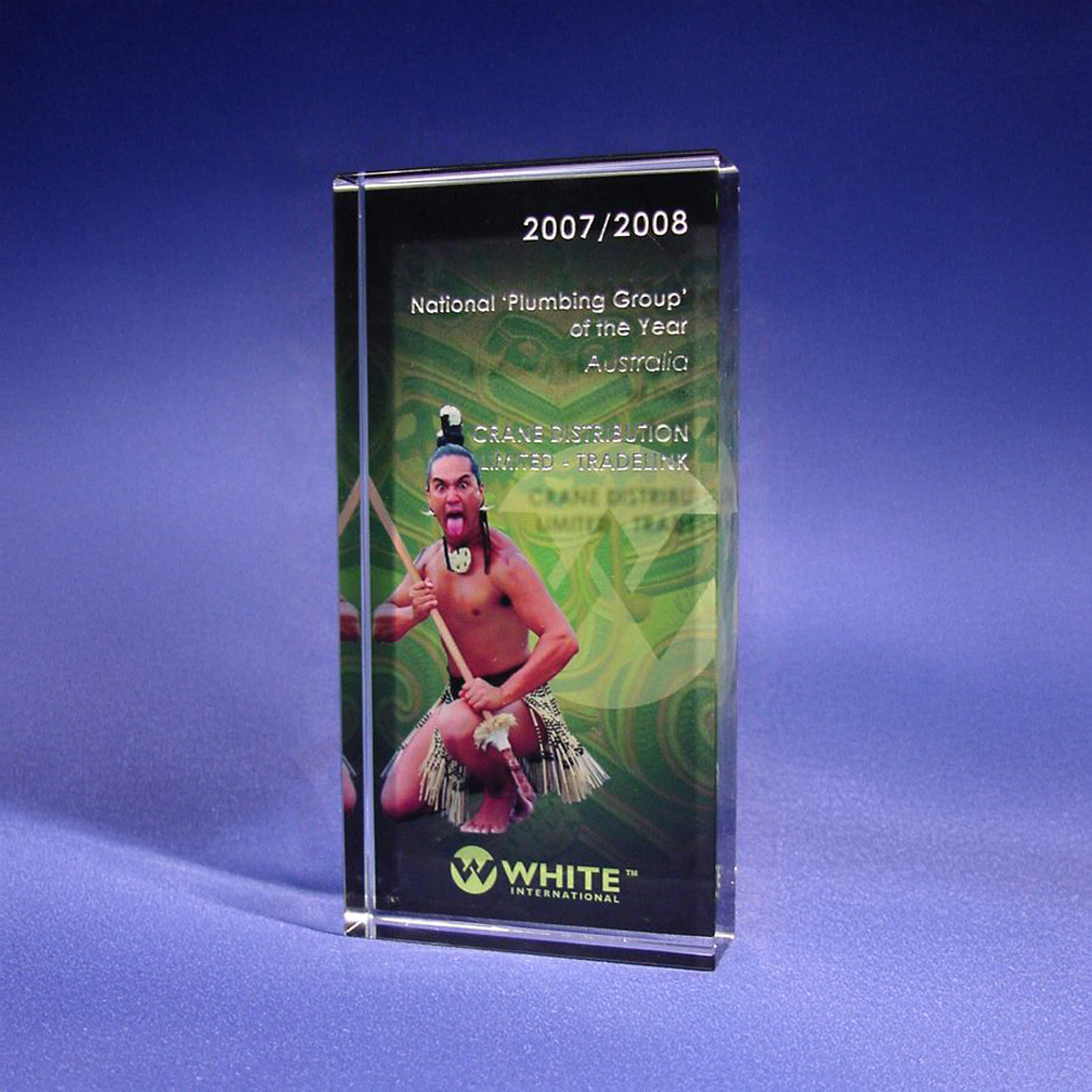 We use Superior Sandblast engraving or high-resolution full-colour printing to achieve striking results on our glass awards and trophies.