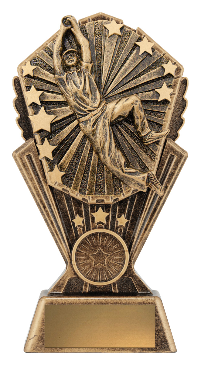 Celebrate fielding brilliance with this distinguished addition to our cricket trophies collection. Featuring a gold metallic finish, the trophy showcases a male figure in a striking catching pose, framed by a bold starburst design and surrounded by stars. The crafted details and robust structure make it a memorable symbol of achievement for any cricket event.