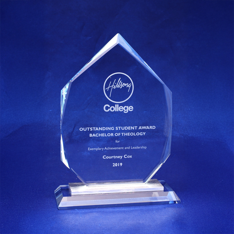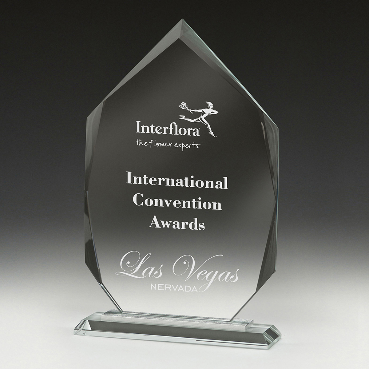 Glass trophies typically have a very slight green tinge, which can subtly affect the appearance of colour printing. In contrast, crystal trophies are completely clear.