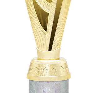 With its striking gold, black and silver palette, this gold trophy cup features an elegant star themed design crafted from a blend of durable plastic and marble. The trophyÂ’s customisable logo area and sturdy base offer flexible recognition options, making it ideal for honouring general achievement. Its refined form delivers a memorable and professional award experience.
