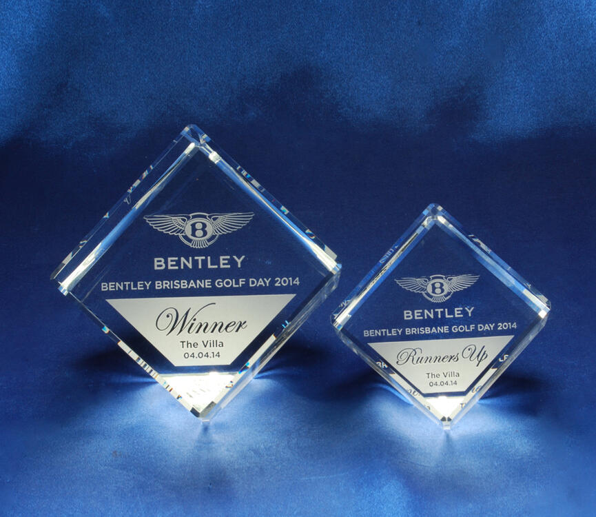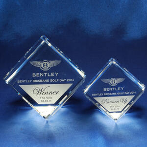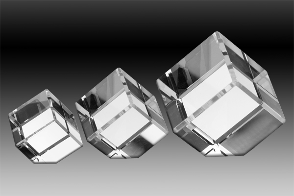This crystal award features a contemporary cube design, masterfully crafted from optical crystal. Bevelled edges on every side catch and refract light, creating a captivating visual effect.