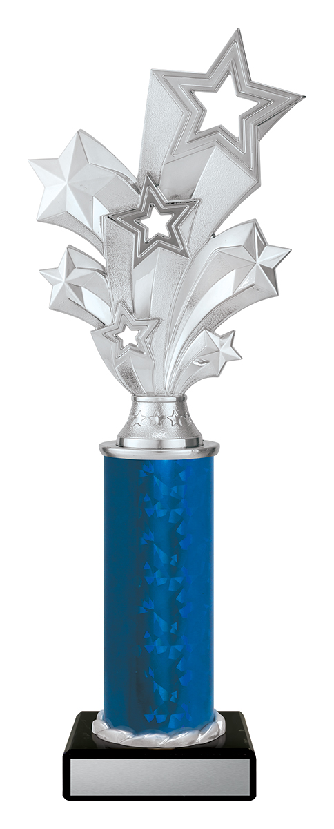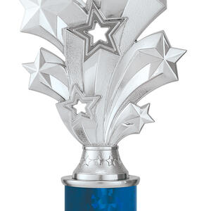 Featuring a striking starburst design with radiant silver and blue details, this dance trophy brings a sense of movement and celebration to any awards presentation. The layered stars and blue accented base create a vibrant focal point, while the combination of metal and plastic ensures a durable, quality finish.