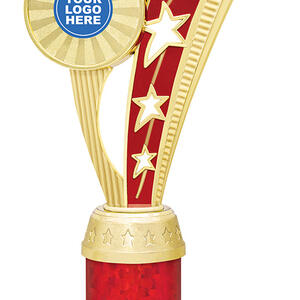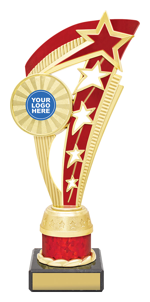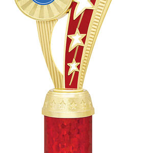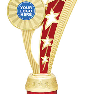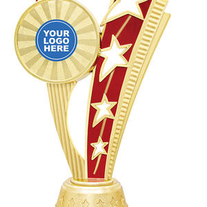 This dance trophy from the Echo Star Series features a contemporary star themed design in gold and red, capturing the energy and artistry of dance. Crafted from quality plastic and metal, it is mounted on a sleek black base for a refined finish, making each award uniquely meaningful.