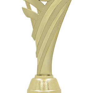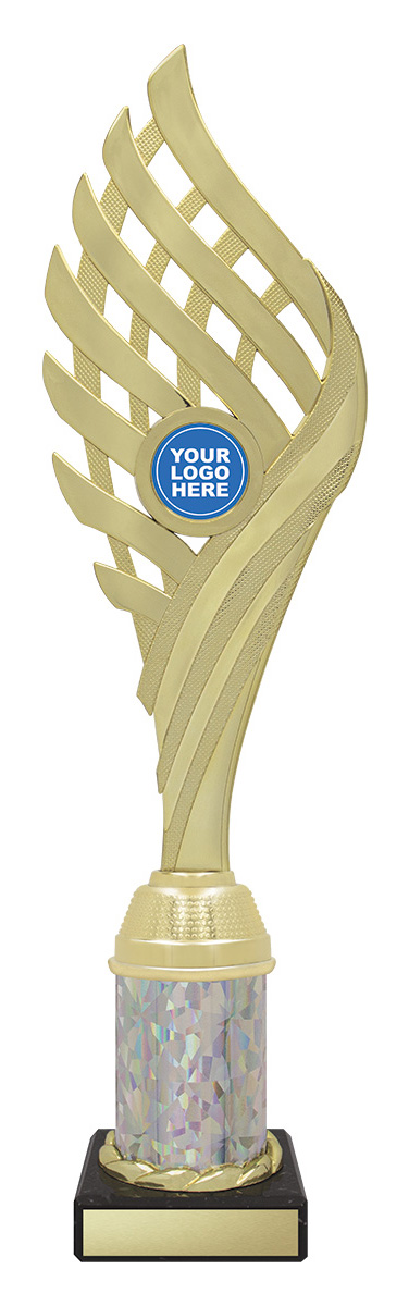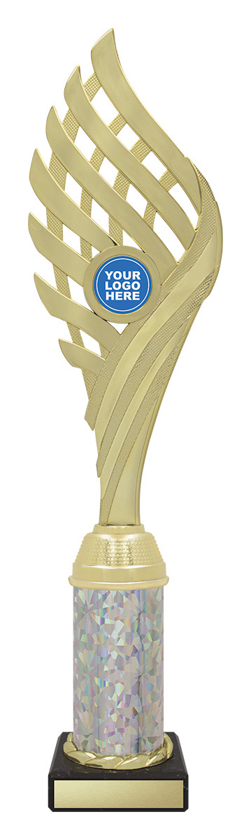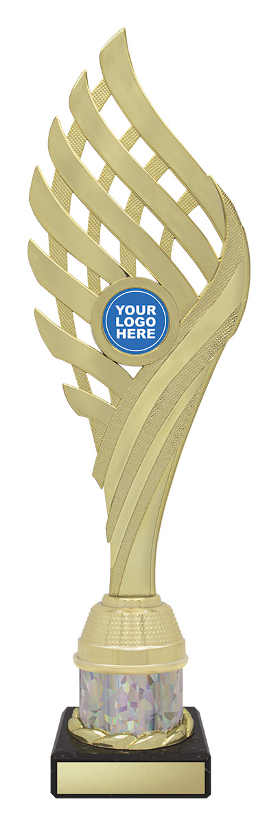 Showcasing a striking abstract wing design, this dance trophy merges gold and silver elements for a contemporary, celebratory look. Crafted from durable plastic, it brings a memorable, professional finish to dance recognition.