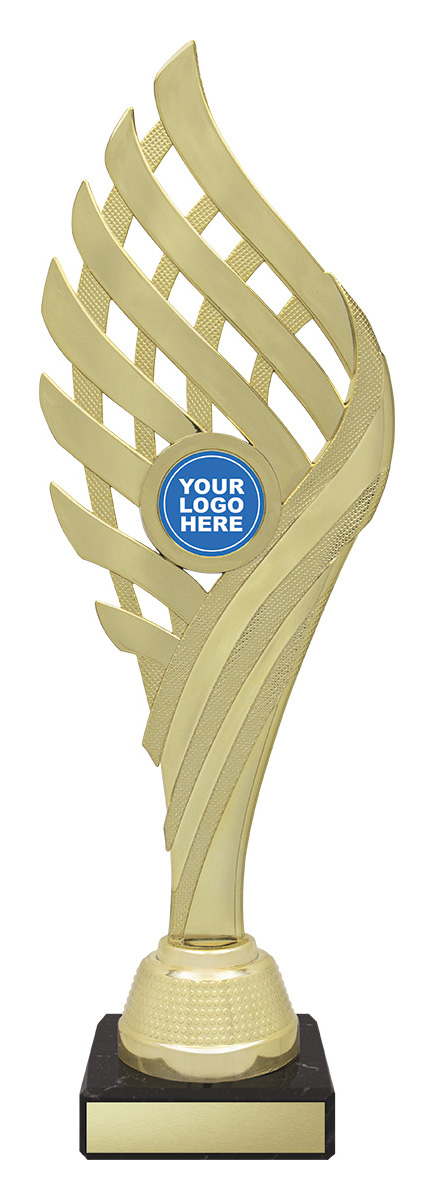 Showcasing a striking abstract wing design, this dance trophy merges gold and silver elements for a contemporary, celebratory look. Crafted from durable plastic, it brings a memorable, professional finish to dance recognition.