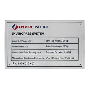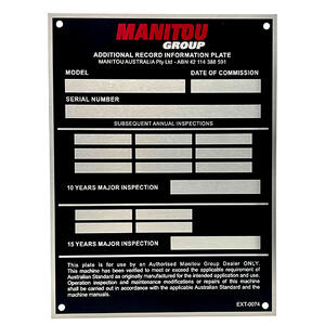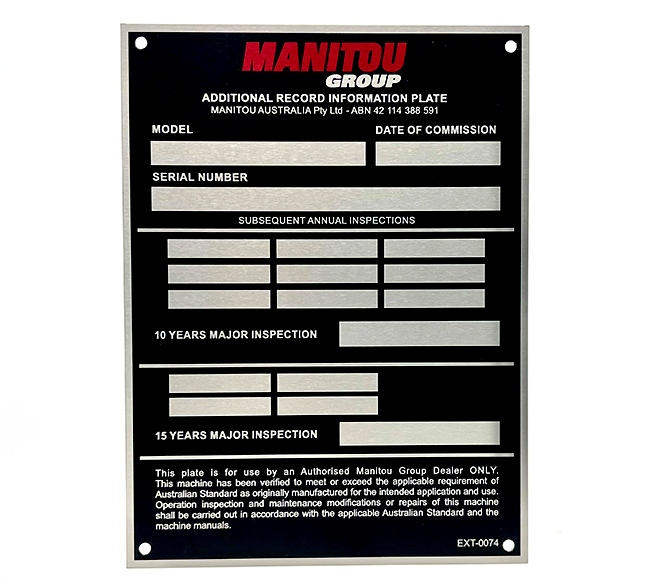 DuraSub Compliance Plates provide a clear and professional way to display essential safety, regulatory, and identification information. Produced using advanced sublimation printing, these plates allow for full-colour text, barcodes, logos, and detailed graphics to be permanently infused into specially coated panels. This process delivers crisp detail and a smooth, scratch-resistant finish that resists fading indoors.