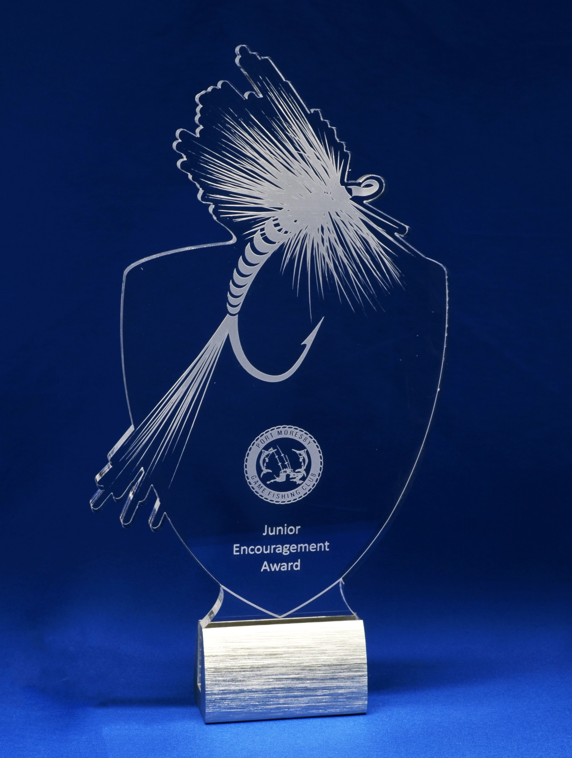 This contemporary acrylic fishing trophy features a striking laser cut fly fishing design, symbolising power and endurance. Crafted from clear acrylic with precision engraving, the shield style award sits on a brushed silver base for a professional finish. A superb choice for club champions, tournament winners, and big catch achievements.