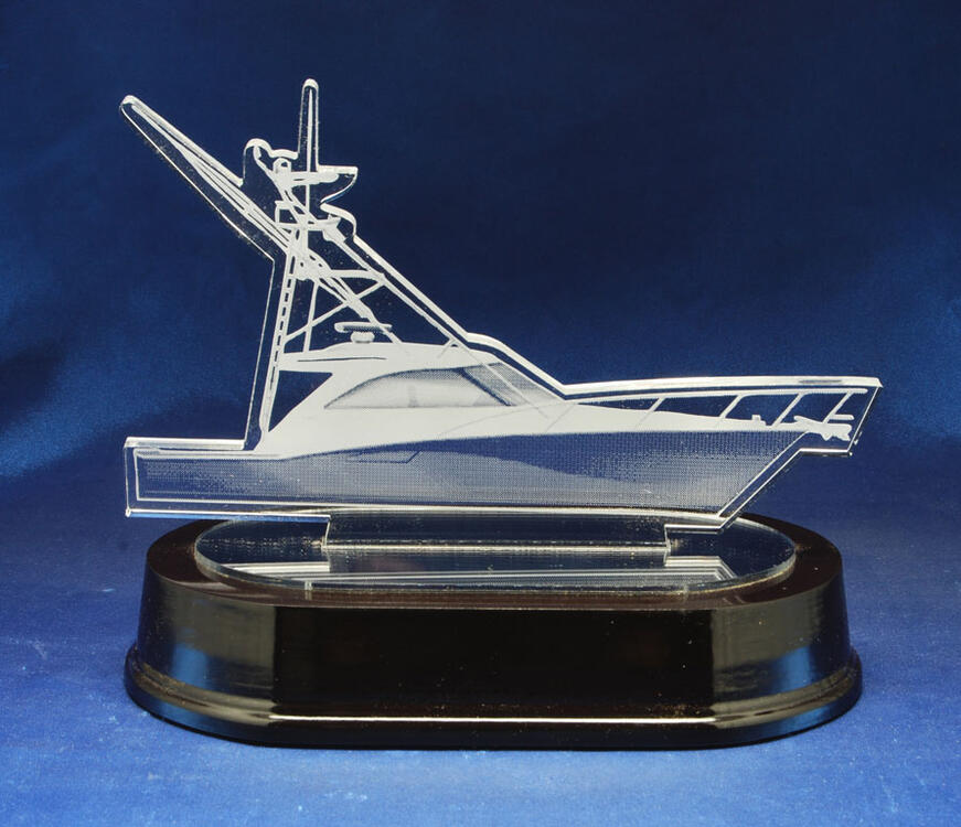 This striking game fishing trophy captures the excitement of angling achievement with its detailed boat design and generous proportions. This fishing trophy presents a substantial and professional appearance, ideal for recognising excellence at fishing tournaments or club events. Crafted for lasting impression, it celebrates skill and dedication in competitive fishing.