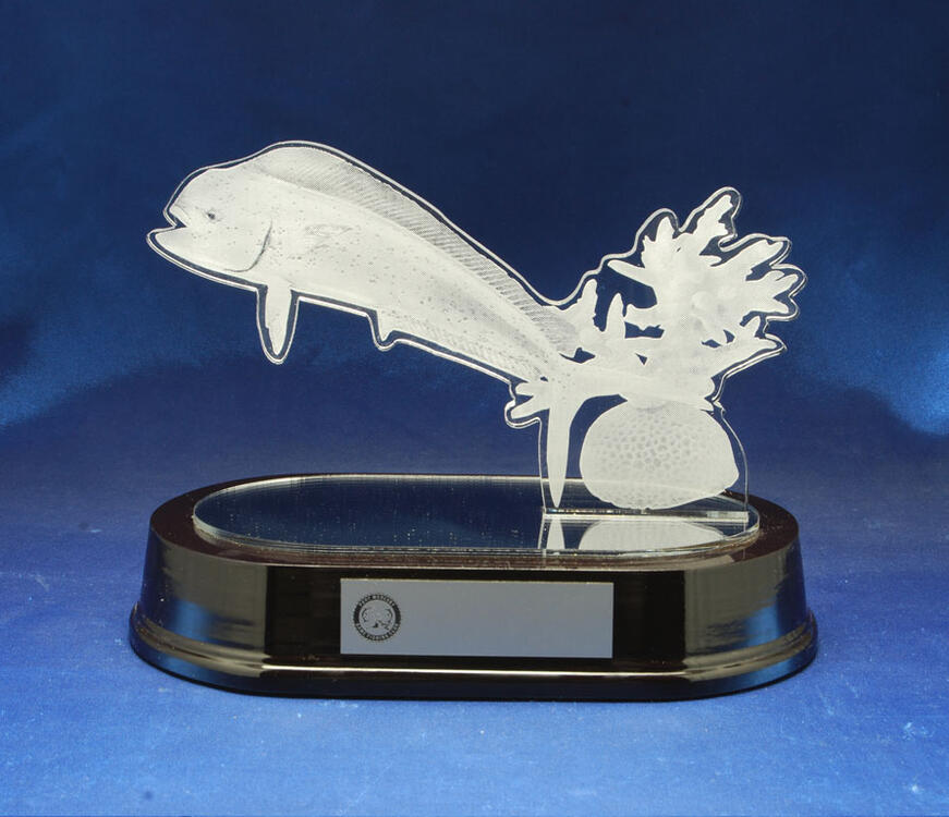 Showcasing a striking Mahi Mahi motif, this game fishing trophy offers a bold visual tribute to exceptional angling skill. Its balanced size makes it a memorable centrepiece for fishing tournaments or club presentations. Crafted with attention to detail, this trophy is designed for those who value recognition in the game fishing community.