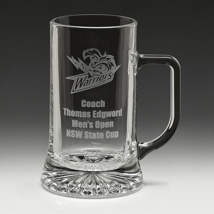 This 500ml glass beer tankard features a classic shape and heavy base for a sturdy, premium feel. Crafted from quality glass with exceptional clarity, its ideal for laser etching or sandblast engraving to showcase names, achievements, or logos. A popular award or gift for sports clubs, corporate events, and celebrations, this premium glass tankard combines timeless design with lasting practicality.