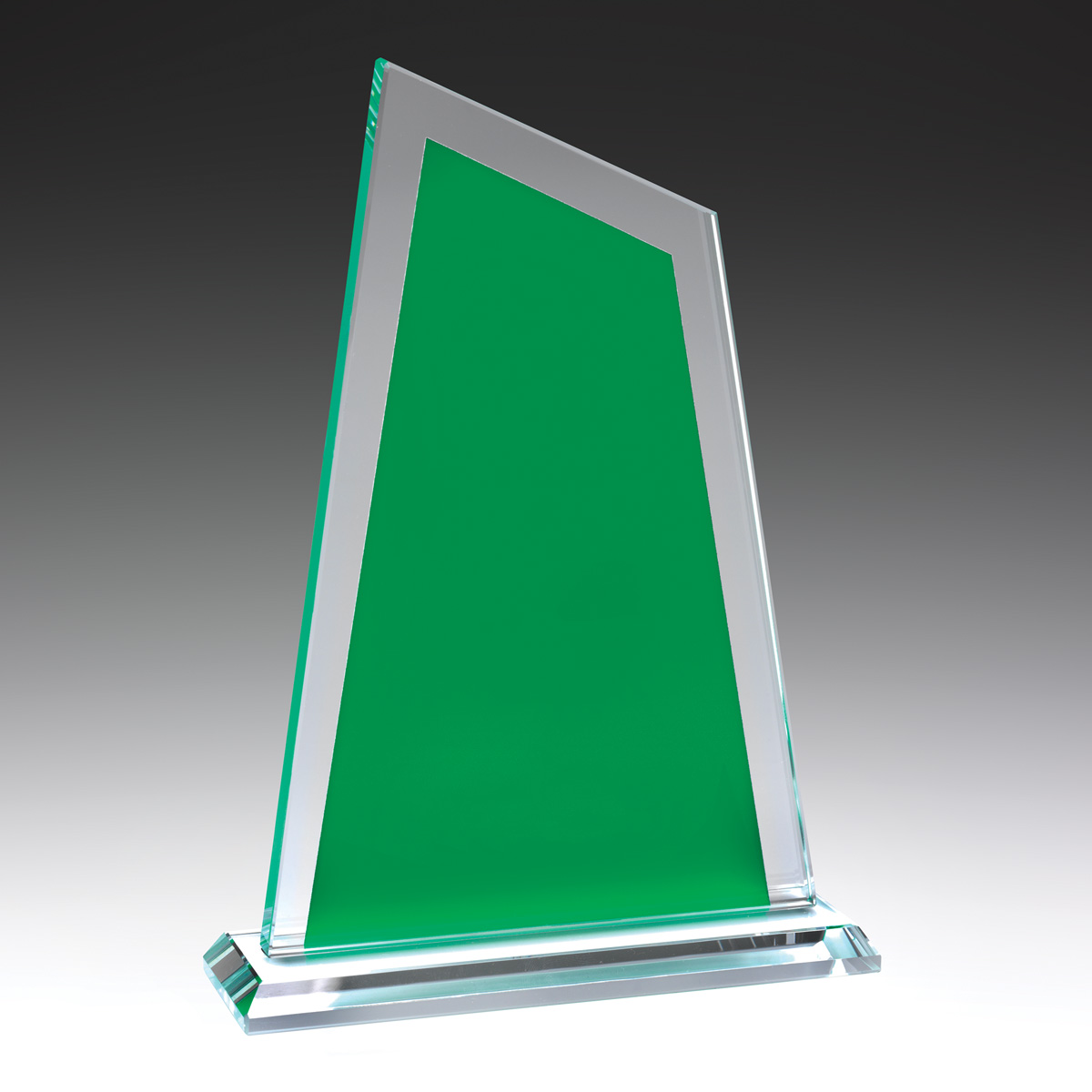 Glass trophies typically have a very slight green tinge, which can subtly affect the appearance of colour printing. In contrast, crystal trophies are completely clear.