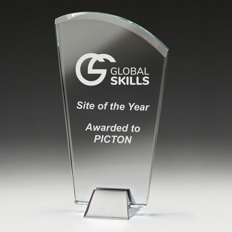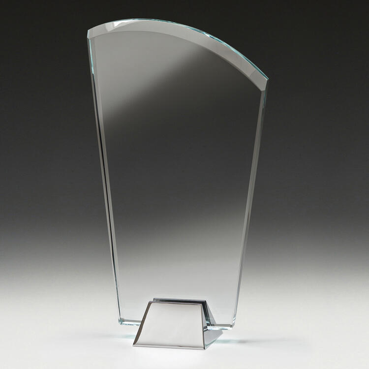 Glass trophies typically have a very slight green tinge, which can subtly affect the appearance of colour printing. In contrast, crystal trophies are completely clear.