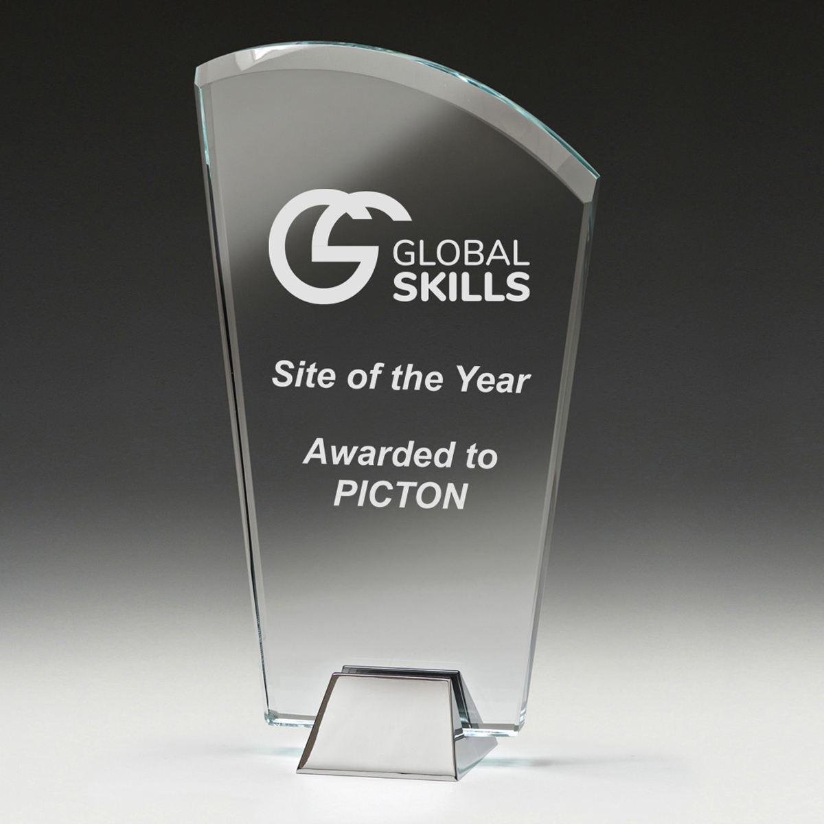 We use Superior Sandblast engraving or high-resolution full-colour printing to achieve striking results on our glass awards and trophies.