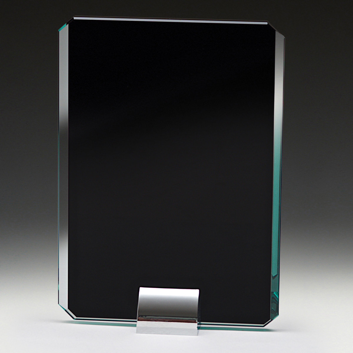 Glass trophies typically have a very slight green tinge, which can subtly affect the appearance of colour printing. In contrast, crystal trophies are completely clear.