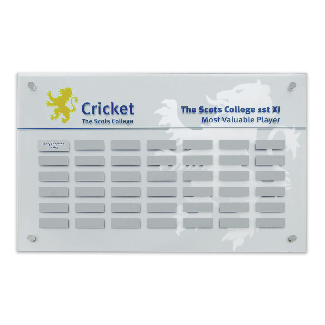 The Contemporary Honour Board is crafted to display achievement with clarity and sophistication, complete with dedicated name plates for ongoing personalisation.